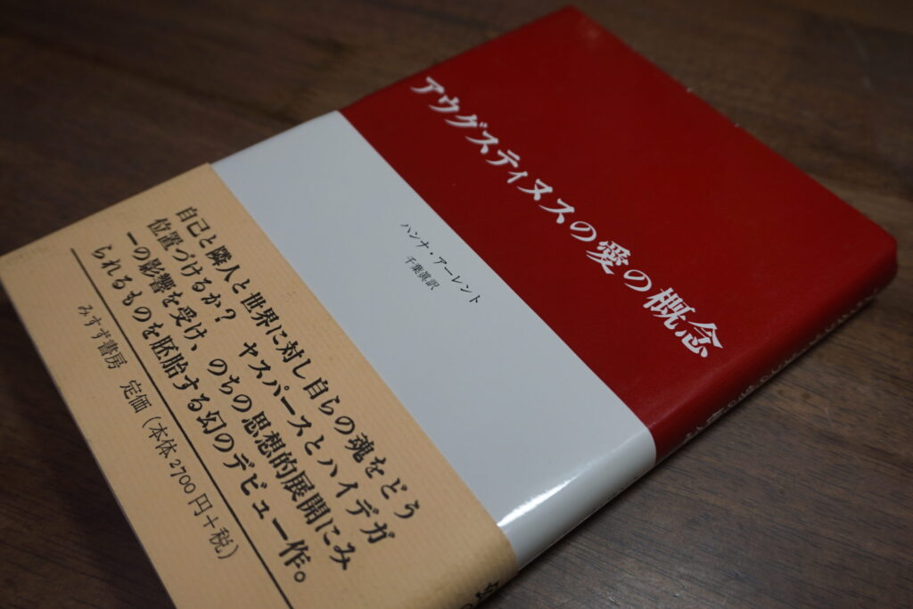 オークション◎アウグスティヌスの愛の概念 ハンナ・アーレント 千葉眞訳 みすず書房 定価2970円 2002年初版|送料185円 2026.01.22 ◎アウグスティヌスの愛の概念 ハンナ・アーレント 千葉眞訳 みすず書房 定価2970円 2002年初版|送料185円1月28日に終了するオークションですVisited 3 times, 3 visit(s) today Post Views: 19 ◎シュトルム文学研究 協会設立十周年記念論文集 日本シュトルム協会編 東洋出版 定価4000円 1993年初版|送料185円前の記事 ◎不死身のヨーロッパ 過去・現在・未来 テオ・ゾンマー 加藤幹雄訳 岩波書店 定価2090円 2000年初版|送料185円次の記事