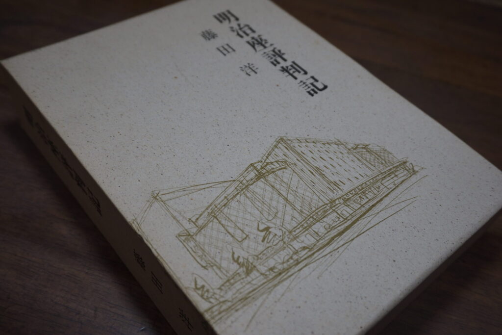 オークション●明治座評判記 藤田洋 明治座 昭和63年初版・非売品|明治座30年小史付|送料600円 2026.02.07 ●明治座評判記 藤田洋 明治座 昭和63年初版・非売品|明治座30年小史付|送料600円2月10日に終了するオークションですVisited 5 times, 5 visit(s) today Post Views: 25 ●芝居の痕跡 藤田洋 古希記念・私家版 平成16年初版前の記事 ●ひと夜 宇野信夫著作集 青蛙房 昭和42年初版次の記事