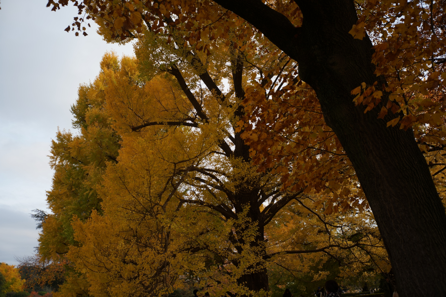 お昼すぎに二人で出かけた。今日は新宿御苑まで紅葉を見にいこうか、と。