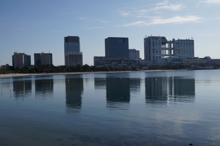お台場海浜公園をしばらく逍遥。ベタ凪の海で苔を喰む魚の群れ。砂浜には親子連れも多かった。ここの海は危なくないから気軽に遊べるよね。